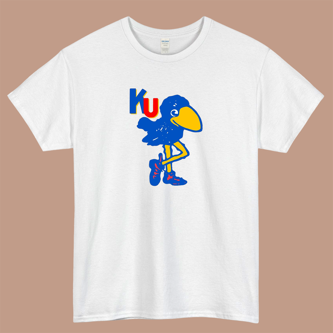 KU Vintage Jayhawk Logo Mens Unisex Short Sleeve T-Shirt Size S-3XL - P